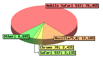 | 76.45 % | Mobile Safari 537 | | 12.10 % | Mozilla/5.0 | | 2.43 % | Chrome 70 | | 2.13 % | Safari 537 | | 0.93 % | Chrome 131 | | 0.64 % | serpstatbot/2.1 | | 0.51 % | Chrome 142 | | 0.38 % | Safari 604 | | 0.37 % | Chrome 119 | | 0.34 % | Chrome 116 |